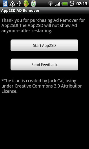 A: Purchase and install it, then restart your App2SD, you will find the Ad removed automatically.