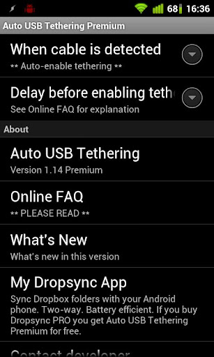 | Name: Auto USB Tethering Premium Entwickler: ttxapps Preis: Größe: 5,9k | Version: 1.14 minimale Android Version: 2.2 bis 2.3.7 Kategorie: Kommunikation Download: Look at the bottom of the page |