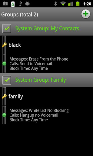 * Contact Groups Blocking: block all numbers in a contact group, support any time blocking or on calendar schedule.