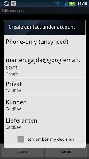 * Kontakte von einem Account in einen anderen kopieren (tippe auf das Account-Symbol für ein Menü)