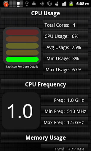 | Name: CPU Usage Monitor Entwickler: Pocket App Builders Preis: Größe: 3,6M | Version: 3.0.4 minimale Android Version: 2.0 oder höher Kategorie: Effizienz-Tools Download: Look at the bottom of the page |