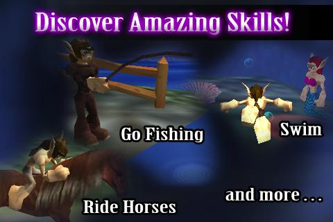 * 360 degree swimming! Go fishing for food! Even ride horses!