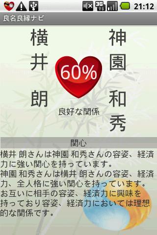 ・個別の相性鑑定はもちろん、電話帳から相性の良い相手を探すので、婚活にも利用できます。