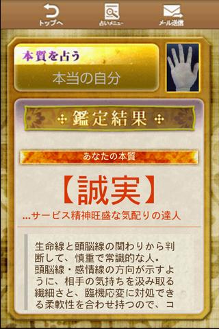 ●その場で、「性格」「恋愛」「仕事」「金運」など、あなたの本質と運命を読み解き、を表示します。