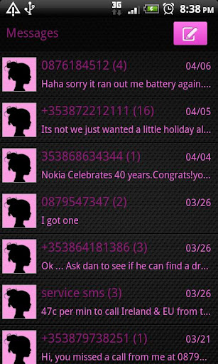 This is the Pink night theme from my Night Series of GO SMS PRO themes.