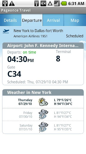 We're with you every step of the way. Before you head out, we'll let you know what time your flight leaves, and notify you of any delays. With just a tap, you can see your entire itinerary, including reservation numbers, seat assignments, gate numbers and more. We'll even let you know what the weather is like at your destination.