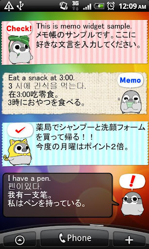 Please tap on the widget, and you can write memo on it. Please use it like sticky, post-it, or note-pad. You’ll find it a tool with full of entertainment. It will surely advance productivity when used for your job.