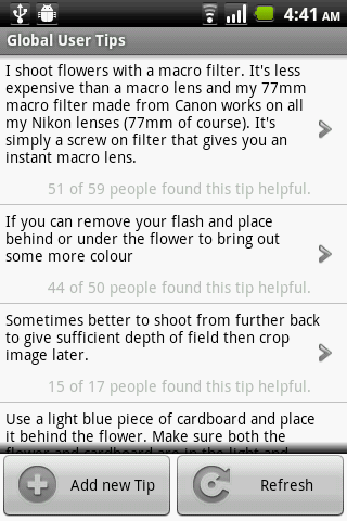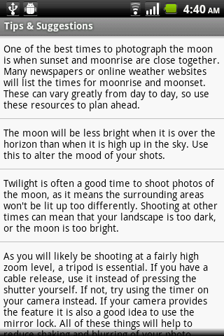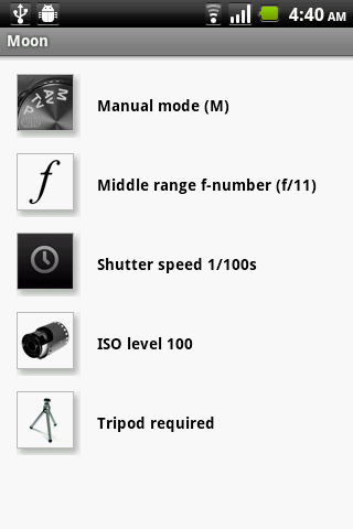 PhotoCaddy is the photography expert you can carry in your pocket. Equipment tips, camera settings, creative suggestions and technical points for over 50 categories of photography subjects, covering practically anything you will ever point your camera at.