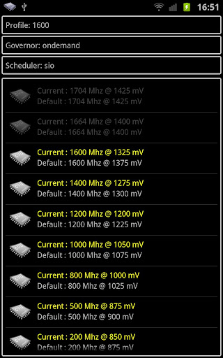 PimpMyCpu is an application to manage your device cpu frequency and voltage based on profiles and rules. Since version 4.4 you can also assign a profile per application!