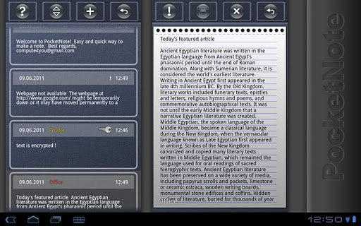 | Name: Pocket Note Entwickler: compute4you Preis: Größe: 1,1M | Version: 2.17 minimale Android Version: 1.6 oder höher Kategorie: Tools Download: Look at the bottom of the page |