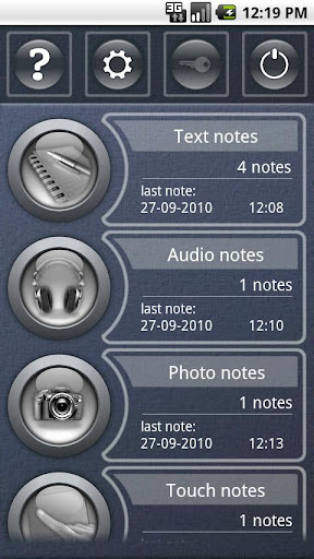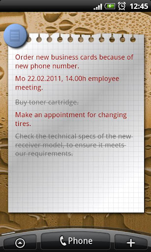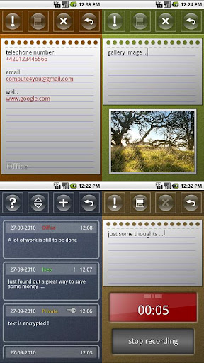 oder verwende den Touchscreen um zu zeichnen. Möglichkeit Typ und Priorität der Notiz zu verändern. Textverschlüsselung. Login Pin beim Starten der Applikation. E-mail Export. TODO widget. Drucken auf Netzwerk Drucker und CUPS Print server.
