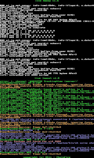 live dmesg is the one and only boot animation replacement that shows the actual dmesg log (kernel debug messages). It looks a bit similar to a BIOS boot. Handy for developers too! Unlike other similar apps, the information you see on screen is real and live, not a pre-recorded fake.