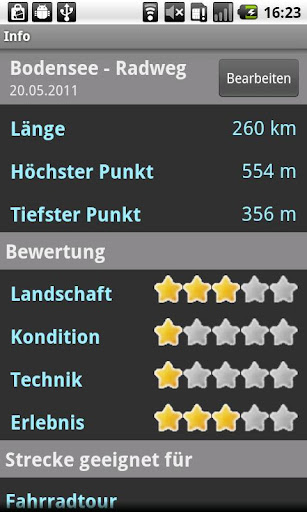 Jede Tour lässt sich per Email im GPX-Format verschicken und kann zu einem späteren Zeitpunkt am PC betrachtet oder mit Freunden ausgetauscht werden. Touren können auch in der Kartenansicht dargestellt werden.