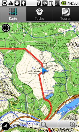 Als Basiskarte enthält die App die "Open Street Map". Sie umfasst alle wichtigen Informationen zu Straßen, Wegen und Städten. Mittels Fingerbedienung ist direktes Verschieben und Zoomen der Karte problemlos möglich.