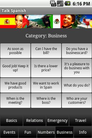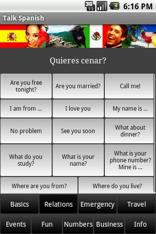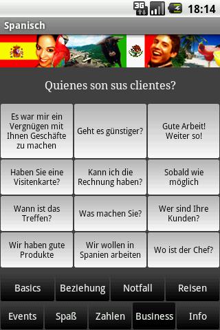 | Name: Spanisch Entwickler: Bhuio.com Preis: Größe: 16M | Version: 2.1 minimale Android Version: 1.6 oder höher Kategorie: Reisen & Lokales Download: Look at the bottom of the page |