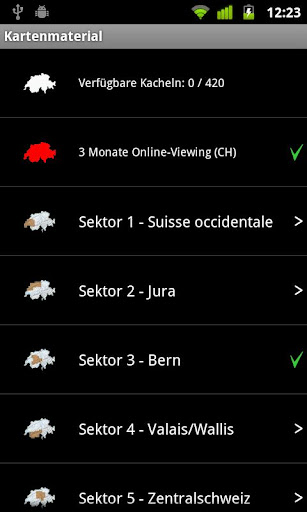 Die Applikation enthält ein Start-Guthaben im Umfang von einem halben Kartenblatt. Damit lässt sich Swiss Map Mobile an einem beliebigen Standort mit echtem Kartenmaterial und vollem Funktionsumfang ausprobieren. Mittels Swiss Map Mobile-Sektoren können Sie Zugriff auf mehr Kartenmaterial direkt aus der Applikation erwerben. Näheres zu Swiss Map Mobile erfahren Sie direkt bei swisstopo.