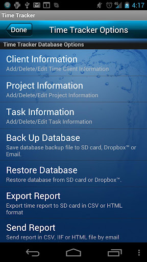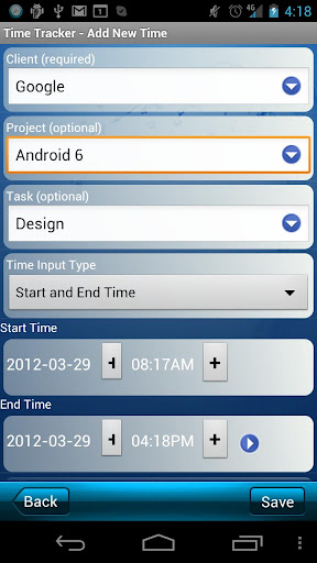 Time Tracker is an Android based standalone application and does not use internet for data storage. This makes the product perfect for protecting your sensitive data and for tracking your working time spent on tasks wherever you are.