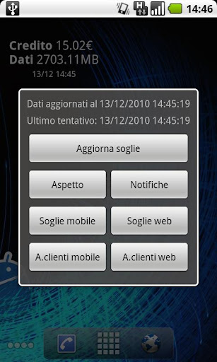 Inoltre puoi aggiornare le soglie anche quando il telefono è connesso in WiFi: tocca il widget, seleziona "Soglie web", configura l'accesso all'Area clienti web e collega le soglie che ti interessano a quelle che hai configurato in precedenza per l'Area clienti mobile.