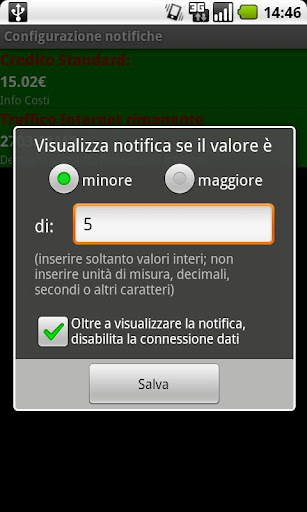 Puoi anche configurare l'aspetto grafico del widget e impostare notifiche al superamento di un valore per le soglie (con eventuale disabilitazione automatica della connessione dati).