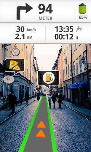 Wikitude Drive ist das weltweit erste Augmented Reality Navigationssystem für Smartphones. Die Fahrtroute wird dabei direkt in das Kamerabild des Smartphones eingeblendet. Der Fahrer folgt einfach der eingeblendeten Linie und muss nie mehr den Blick von der Straße nehmen. Neben der Augmented Reality Ansicht verfügt Wikitude Drive über eine Kartenansicht wie andere Navis. Karten inkludiert: Deutschland. Die Karten werden online geladen, somit immer aktuell.