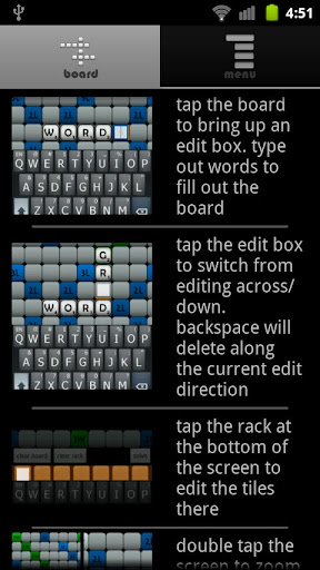 Switch to any of 8 game rules on the fly to change the multipliers on the board and the values of the tiles. Works with standard Scrabble, Words with Friends, Wordfeud, Lexulous, Droid Words, WordScraper, Wordsmith, and WordWise.