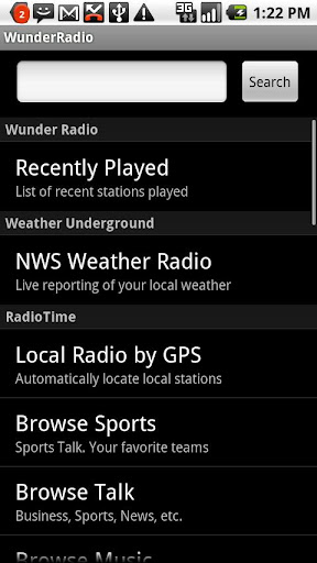 Wunder Radio is a great way to listen to thousands of global radio stations, scanners and other audio streams. Browse the huge directory of stations from RadioTime, TUNED.mobi and others. Search by location and over 400 different genre such as music, talk, sports, and entertainment. (New update improves Sirius and XM)