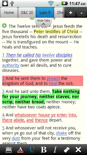 • Advanced highlighting (24 total colors, underline, bold, italic; words, phrases, and entire verses)