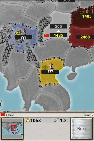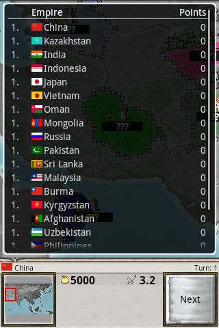 This is the single player version for Age of Conquest, a medieval Risk-like turn-based strategy game. The game features the map of Asia.