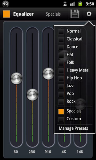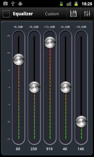 Improve the sound of your device with a graphical 5-band Equalizer! Create, store and manage custom EQ presets.