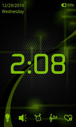 Bedside is a very dimmed customizable night clock. You can change the colors of the letters/icons, as well as the background. You can even let it use your own wallpaper if you'd like.