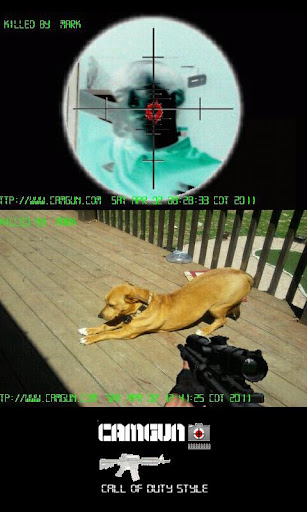 Feedback please at http://www.camgun.com. -- Works with Android 2.0 and up. Search for CamGun 1.5 Android for earlier phones -- Comments at http://www.camgun.com. Please email me at blackopspops@gmail.com if it doesn't work on your phone. By Black Ops Pops.