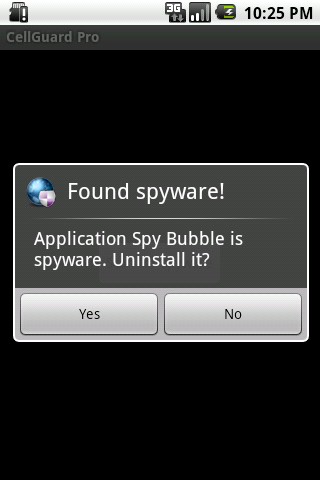 Anti spyware app for Android. Detects & removes spyware apps, such as SpyBubble