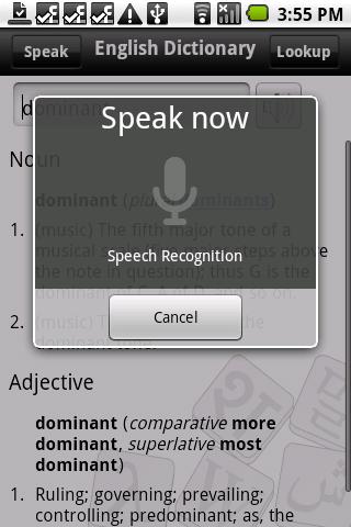 Now you can speak out and it will lookup the word in the dictionary for you. It is hands-free dictionary! It can also pronounce the word for you. It includes English,Spanish,French,Italian,German Dictionary.