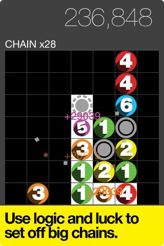 Lass nummerierte Scheiben in ein Gitter fallen, um am Leben zu bleiben, und versuche dabei, Kettenreaktions-Boni zu erzielen. Meistere das einzigartige Spielprinzip in Sekunden und verfeinere deine Strategie mit jedem Spiel.