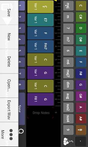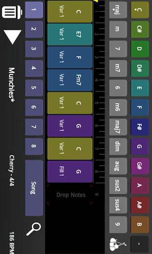Each EasyBand style has 2 variants, 2 fills, an intro and an ending pattern. Each variation can be applied to individual chords or to an entire part.