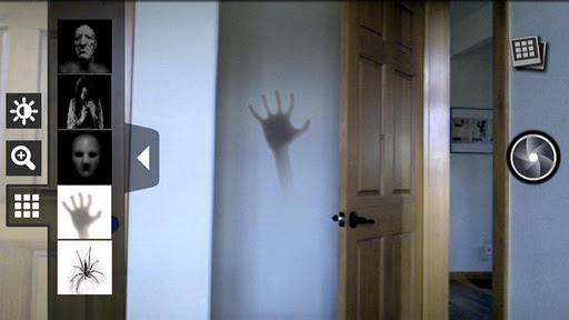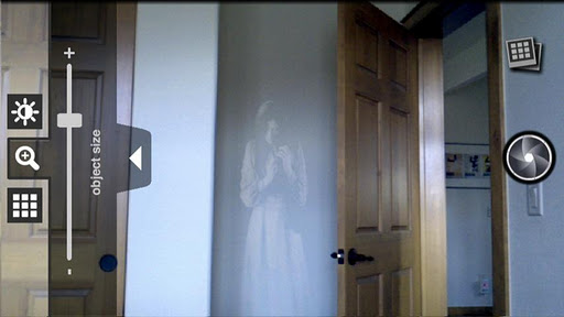 Select between ten frightening ghosts and objects. Objects can be moved by pressing and dragging. Adjust the scale and opacity for a more believable apparition. Show your unsuspecting friend soon after taking the photo so they know you had no time to manipulate it. Try placing paranormal objects into a doorway or window behind your subject. Photos are saved to your phones gallery.