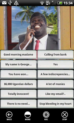 From the creators of the BAFTA winning Fonejacker comes the official Fonejacker Android app. Featuring extensive soundboards of your favourite characters voiced by 'Fonejacker' Kayvan Novak, combining classic catchphrases with new quotes exclusive to this app. Characters like Facejacker art critic Brian Badonde, wheeler dealer Terry Tibbs, Mr Doovde, shonky DVD salesman Charlie Wong, Dufrais, The Mouse, Irish Mike and Mr Internet Service Providings appear for your amusement.