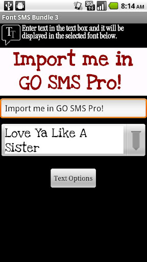 To import these fonts in GO SMS Pro, GO Keyboard, GO Launcher EX, chompSMS, or Handcent SMS: