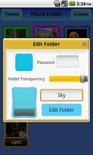 Nach dem Ausführen der Anwendung, klicken Sie auf den Ordner erstellen, um zu schaffen. Ein Ordner wird angezeigt. Wählen Sie die Farbe und Transparenz, und geben Sie den Namen für den Ordner. Ordner Bild ist aus dem ersten Bild in einem Ordner. Geben Sie Ihr Passwort, wenn Sie einen Ordner erstellen