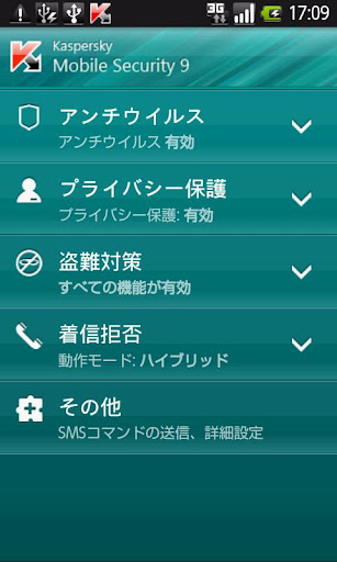 カスペルスキーモバイルセキュリティには、アンドロイド端末のプロテクションに必要なあらゆる機能があります。リアルタイム保護、手動および自動スキャン、定義データベースの自動更新など、あらかじめ設定されたセキュリティレベルに応じて、あなたのアンドロイド端末を、トロイの木馬、バックドア、スパイウェア、ダウンローダー、SMS フラッディング、ワームなどのいわゆるマルウェアの脅威から保護します。