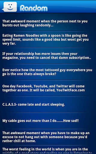 "If you love using Facebook and want to have a selection of funny updates to post to your status at random times or just to amuse people, then Funny Status Updates for Facebook is the way to go."