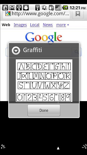 If you were a user of a PalmOS based PDA in the past, this will all be very familiar to you as the input method used by those devices was a stylus drawing Graffiti strokes in an input area at the bottom of the display. But even if you were not a Graffiti user before, you should give it a try now if you find that the on-screen keyboard doesn't suit your input style.