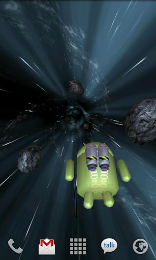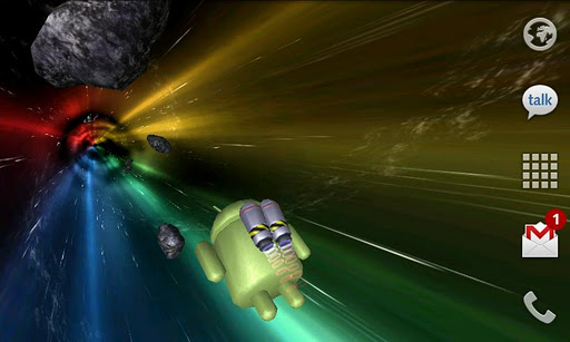 Soar through space with your Android friend! Stars and asteroids whip by as fast as his jetpack can carry him! Double tap to say hello, do a barrel roll, or enable turbo boost for a burst of serious speed!
