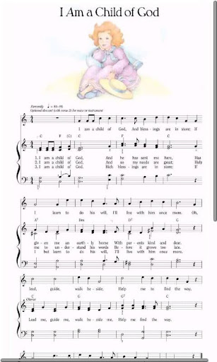 The LDS Hymn Book is a lightweight app that displays musical notation with text and it is able to stream MP3 with the actual hymn with voice and/or just music directly from the LDS church website. It's the official Hymnbook, the Children's Songbook and Young Woman Camp Songs compilations in English, Spanish, Portuguese and French. Because of copyright restrictions a couple hymns are not accessible to the app.