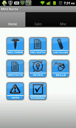 General information from medical terminology, medical abbreviations, medical suffixes and prefixes, different type of calculators, lung and heart sounds, subcutaneous injection sites, medical calculation practice, practice questions on various nursing subjects, and much more!
