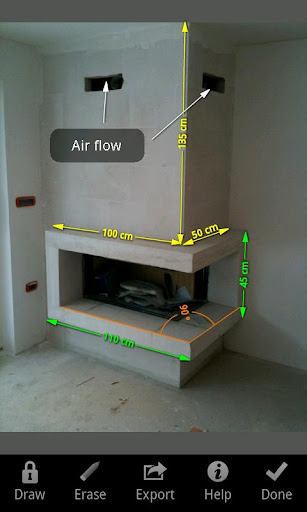 Sie müssen nur ein Objekt fotografieren, dessen Abmessungen Sie speichern möchten. Dann fügen Sie die Maße hinzu: Pfeile, Winkel und Text. Nun können Sie Ihre Maße speichern und sie jederzeit an jedem Ort ansehen und weitergeben.