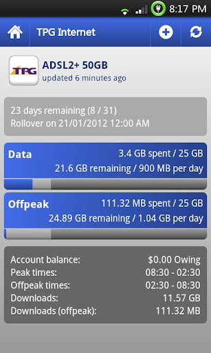 myUsage allows you to easily monitor and keep track of multiple account balances and quota usages for Australian account types.