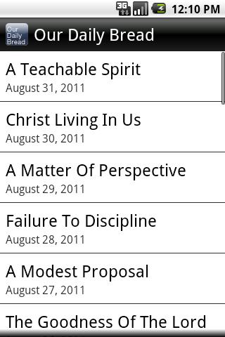 | Name: Our Daily Bread Entwickler: RBC Ministries Preis: Größe: 247k | Version: 1.1.2 minimale Android Version: 2.1 oder höher Kategorie: Bücher & Nachschlagewerke Download: Look at the bottom of the page |