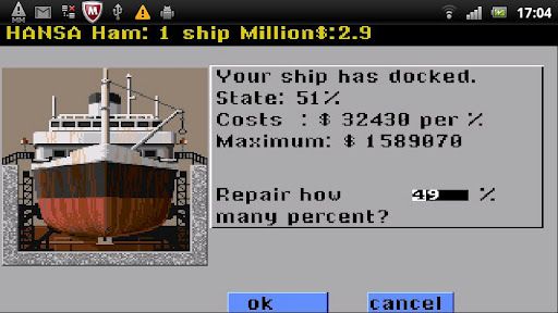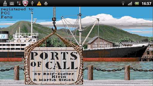 Ports Of Call das klassische Wirtschaftsimulationsspiel ist nun auch auf dem Android verfügbar. Wir haben uns entschlossen es so dicht wie möglich an den Originalgrafiken zu halten. Ein paar Erweiterungen wurden durchgeführt, z.B. ein Steuerkranz für den Schiffsimulator, für eine vereinfachte Bedienung (auf ein freies Feld tippen). Die Tastatursteuerung funktioniert auch, wenn man eine Tastatur besitzt für praktisch alle Buttons auf dem Schirm. Mit der Taste MENUE bekommt man die Möglichkeit das Spiel zu speichern oder ein altes zu laden. Dort gibt es auch eine Hilfe (derzeit noch Englisch). Die Buttons sind recht klein bei manchen Handys, wir haben aber versucht die Schaltflächen soweit wie möglich auszuweiten. Bitte etwas Geduld und üben hilft sehr (siehe Video). Bei Fragen einfach eine Email an uns schreiben. Das Spiel ist in 10 verschiedenen Sprachen, am Anfang Pfeil nach links um die deutsche Sprachfassung anzuwählen.