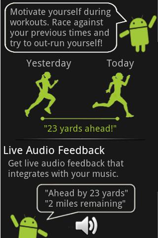 *Macht Dein Workout zum virtuellen Rennen wobei eine Stimme Dir Deinen Vorsprung oder Rückstand ansagt
